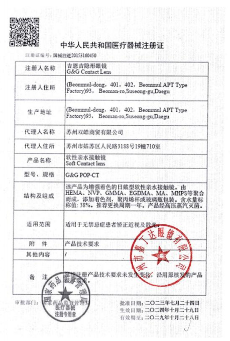 | 注册人或者备案人名称 | 吉恩吉隐形眼镜 |