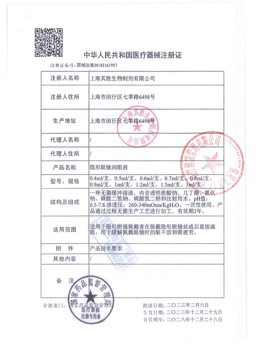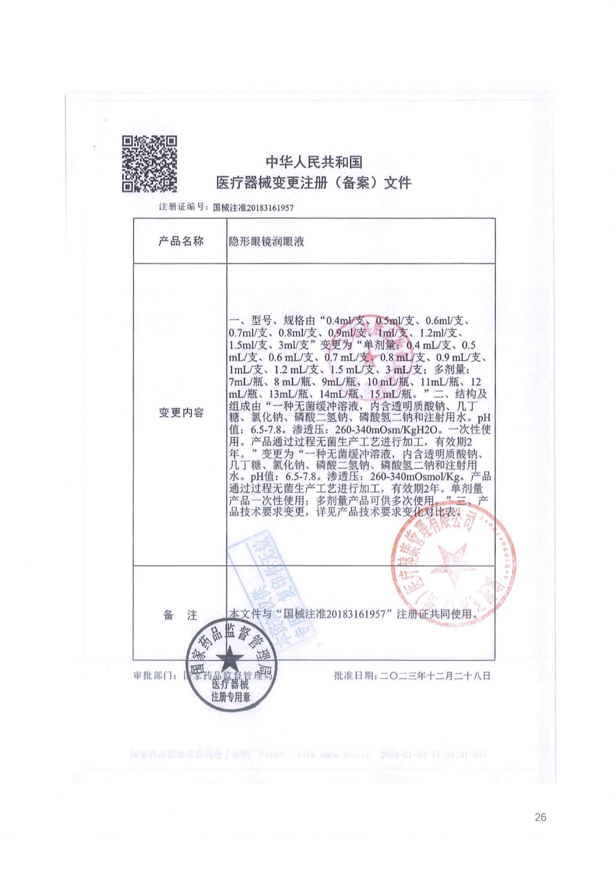 | 医疗器械名称 | 隐形眼镜润眼液 |