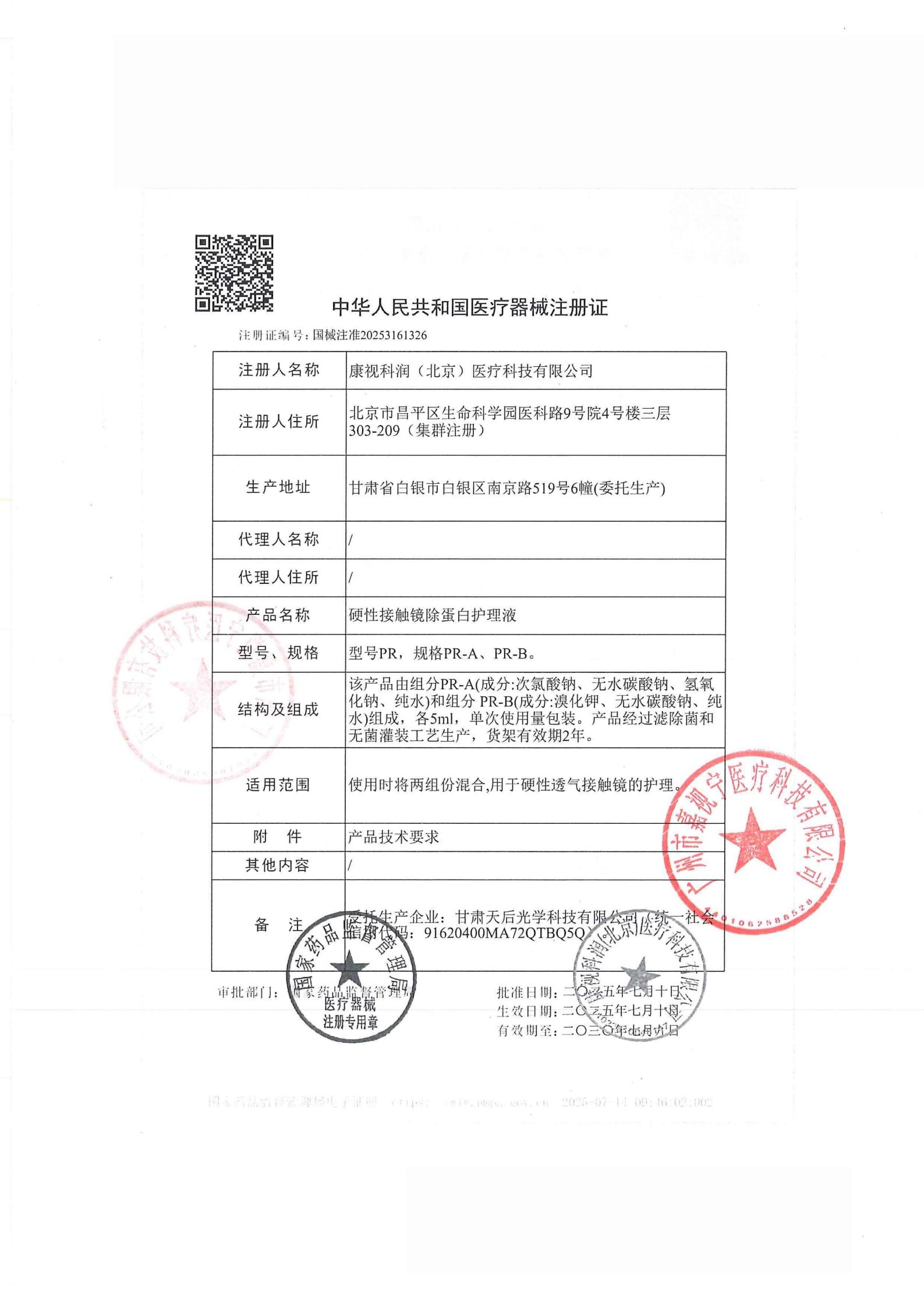 | 医疗器械名称 | 硬性接触镜除蛋白护理液 |