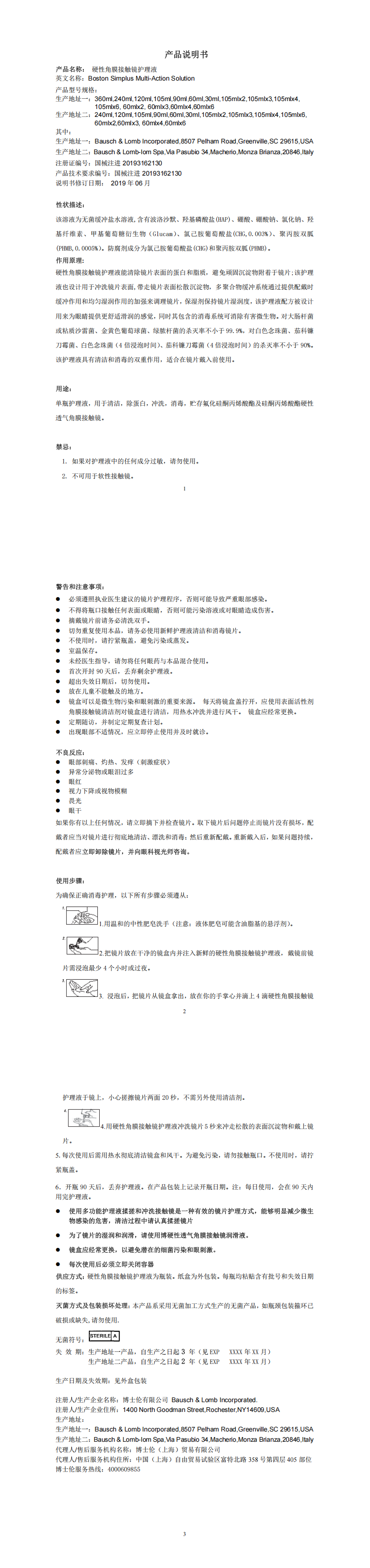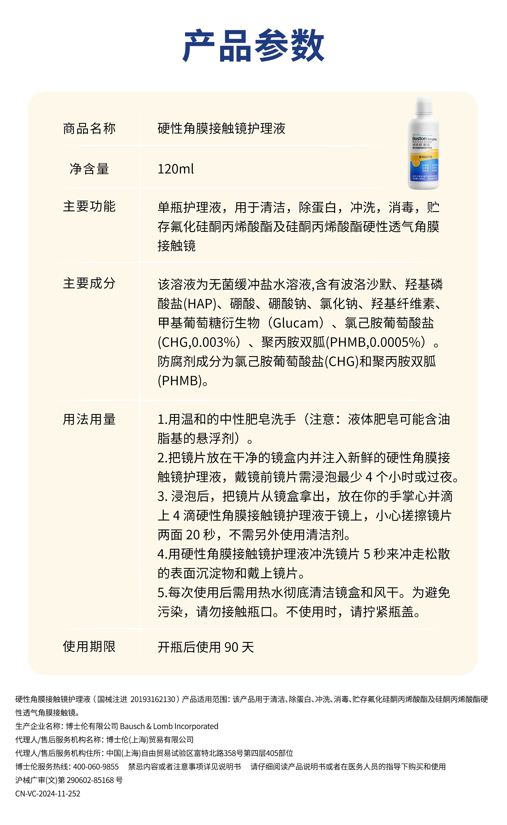 | 医疗器械名称 | 硬性角膜接触镜护理液Boston Simplus Multi-Action Solution |