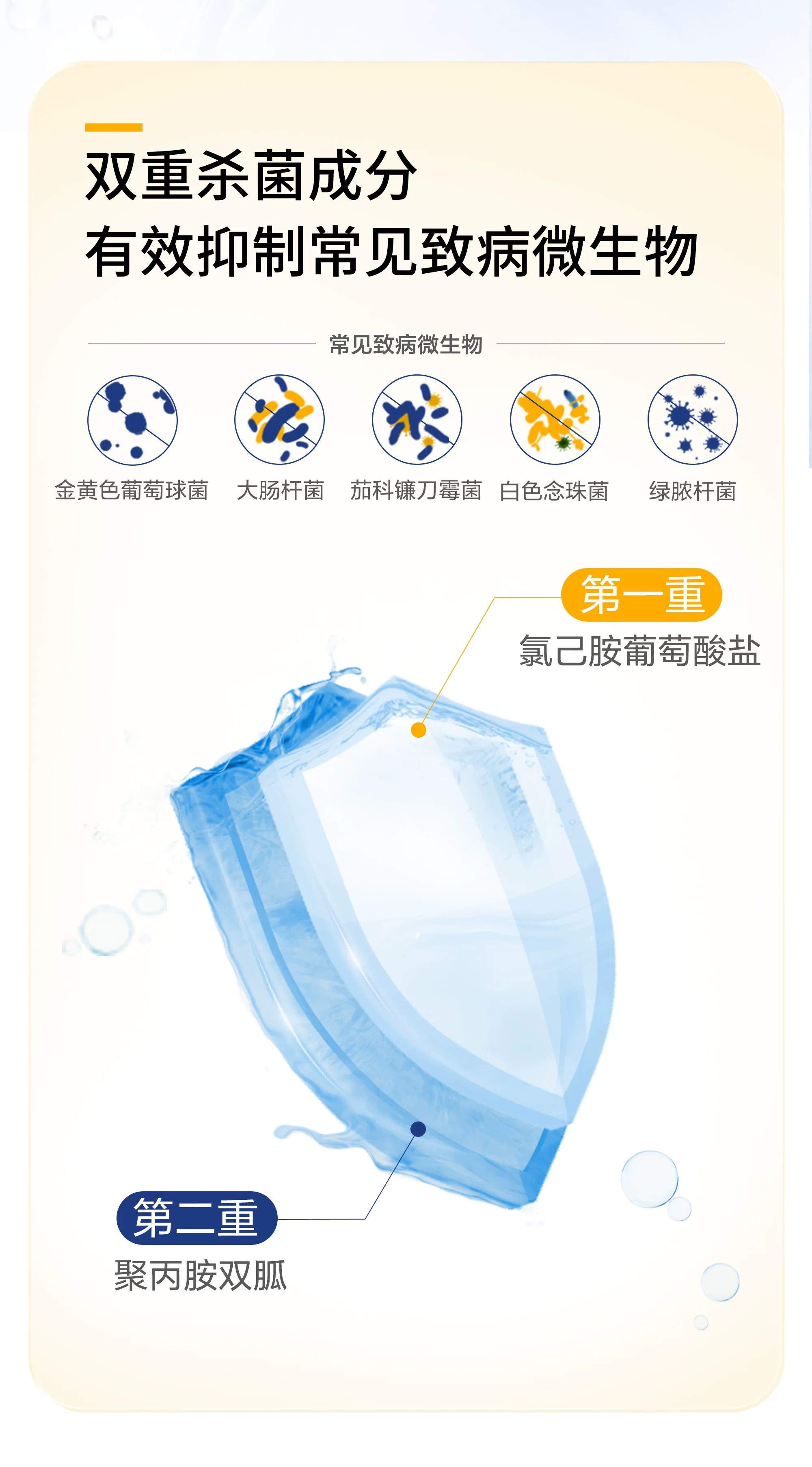 | 结构及组成 | 该产品主要成分为:波洛沙默、羟基磷酸盐、硼酸、硼酸钠、氯化钠、羟基纤维素、聚丙胺双胍、氯己胺葡萄糖酸盐、甲基葡萄糖衍生物。产品采用无菌加工方式生产。生产地址一的产品有效期为3年 |