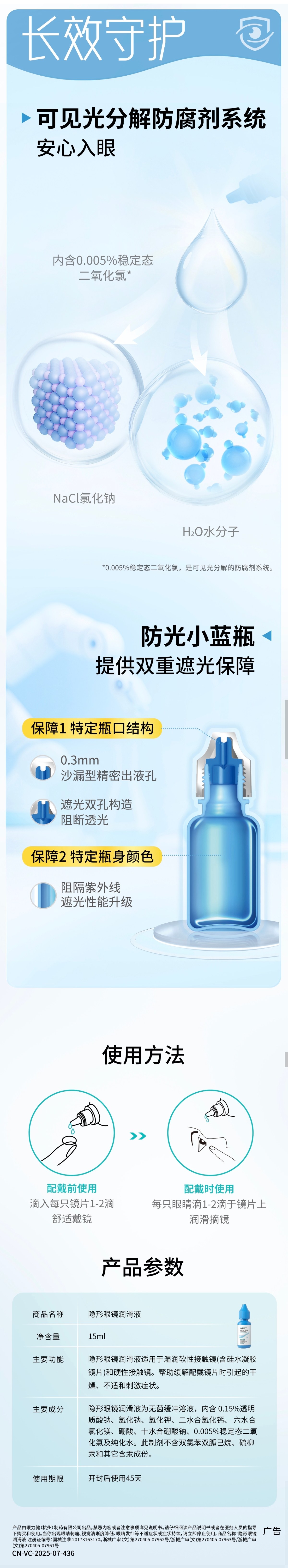 | 适用范围 | 该产品适用于湿润软性接触镜和硬性接触镜。帮助缓解配戴镜片时引起的干燥、不适和刺激症状。 |