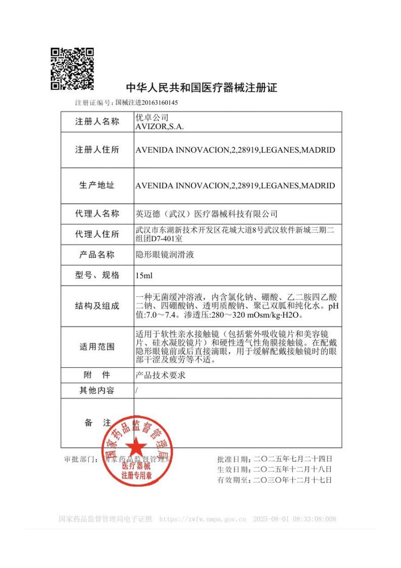 | 优卓公司AVIZOR,S.A. | 英迈德(武汉)医疗器械科技有限公司 |
